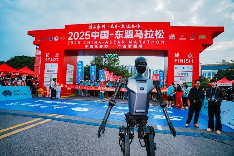 配套活动纷呈,全域共享体育狂欢。AI短视频大赛、健康跑、音乐节、美食优惠、特色市集等系列活动轮番上阵,让跑友与市民沉浸于防城港的开放与热情中。此外,2025中国-东盟马拉松更是一场与未来科技的邂逅。从领物现场机器人互动、问候,到开幕式环节机器人的奔跑探路,科技的魅力已全程融入您的奔跑征程。