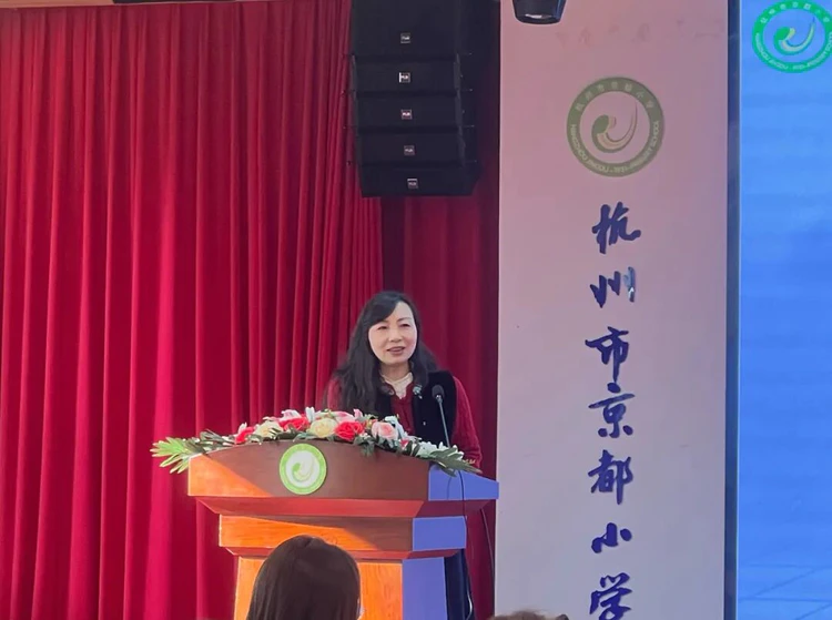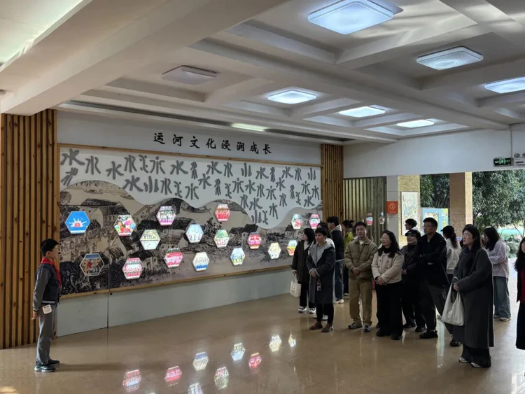 杭州市京都小学书记、校长洪俊携行政团队与学生代表热情接待了来访客人。在“水京灵”小小讲解员的生动引导下,来宾们依次参观了运河长廊、校史馆、文化中庭等特色文化区域。京都娃们从容自信、讲解流畅,详细介绍了学校依托运河文化进行的场馆建设以及“五节四礼”等特色育人成果,赢得阵阵赞许。来宾们对京都小学以运河文化为核心的校园建设给予了高度评价。