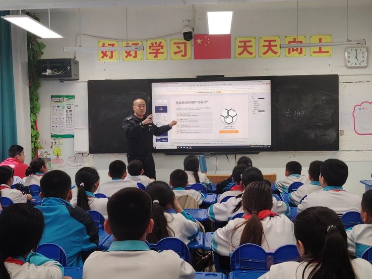 课堂上,法治副校长以PPT演示的形式,围绕交通安全主题展开详细讲解,结合小学地形卫星图,直观清晰地分析了校园周边的道路结构、车流频次及重点隐患路段,让学生们直观认识到在马路上追逐嬉戏、横穿马路等危险行为的安全隐患。同时,民警结合辖区内发生的典型交通案例,用通俗易懂的语言剖析了不遵守交通规则的严重后果,深入解读事故发生的核心原因及应汲取的深刻教训,细致叮嘱学生们过马路时要时刻注意观察路况、严格遵守交通信号灯指示,在人行道上靠右慢行,主动规避交通风险。此外,民警还现场传授了实用的交通安全自我保护技巧,鼓励学生们将所学的交通安全知识带回家,与家长共同学习、相互监督,携手营造安全、有序、文明的道路交通环境。